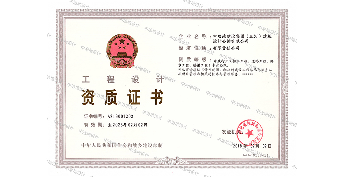 首頁 > 信息公開 > 榮譽(yù)資質(zhì) 工程設(shè)計(jì)資質(zhì)證書